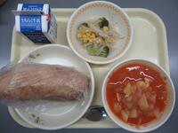 減量はちみつパン 牛乳 なすとトマトのスパゲティ 冷凍みかん