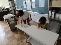 【給食委員会】各教室の配膳台をきれいにしていました。
