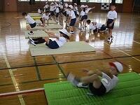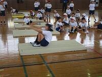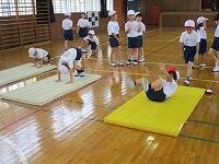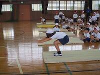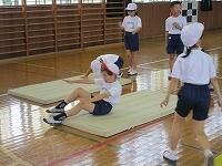 4時間目には、2年生が、前転の練習をしていました。