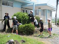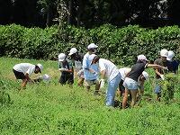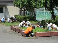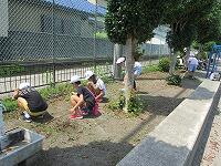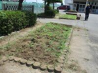 業間休み前半に、全校生で花壇や農園の除草をしました