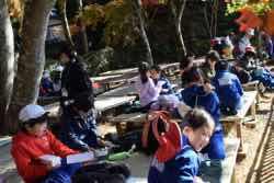 明日は、午前中に野外で「カレーうどん作り」をして、バスで14時半頃、学校に帰ってくる予定です。その後教室で振り返りをして、下校は15:30の予定ですので、お迎えに来てくださる場合は、南門から入り、校庭南側[ブランコ付近]に駐車してくださるよう、お願いします。一斉メールでもお知らせいたします。