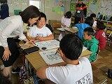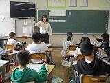 ALTの先生と、担任の先生とのTT(ティーム・ティーチング)の授業で、歌やダンスを取り入れながら、楽しく英語の学習をしています。