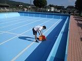 ▲本日、プールの中の掃除をして、水をくみ始めました。