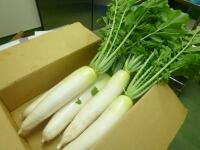 〈だしがらをほぐす様子〉 〈西方産の葉つき大根〉