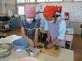 ▼さすが、6年生!! 5年生からの経験を生かして、野菜を切るのも上手になりました。