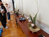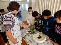 華道教室は、先生方のお話を聞いて班ごとに作品を作成しました。花器のなかに自分の世界を作るつもりで、一生懸命に取り組んでいました。