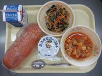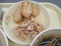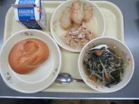 減量米粉パン 牛乳 鶏肉のノンエッグマヨネーズ炒め 豆腐ナゲット 和風コンソメスープ