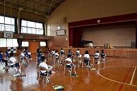 3年生と4年生が交互に並び、一生懸命練習に励んでいます。