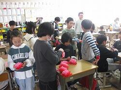 4年生は、2クラス合同で、6年生を送る会の準備をしていました。花飾りを作ったり、なかよしプログラムを考えたりと、とてもウキウキで活動していました