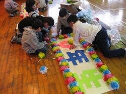 さらに、お花を作っていた4年生が参戦。色画用紙で作った鳥や蝶を飾って、会場を一層華やかにしました