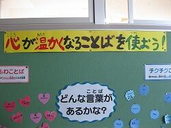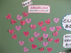 国語:正確に伝える活動、学級活動:人間関係づくりのためのエンカウンター「バースデーチェーン」、めあてカード作成等をしている様子です。