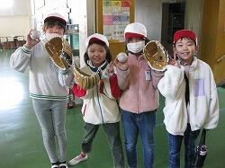6年生がもらったプレゼントを、嬉しそうに見せ合っていました。