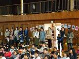 11月2日(金)の2~3校時に、真名子小の児童と合同で、らくりん座の「ゆきと鬼んべ」という演劇を見ました。「ゆきと鬼んべ」では、正面舞台だけでなく、照明や音響を巧みに使うなどとても工夫が凝らされていました。また、迫力のある演技で、子どもたちが物語の中に引き込まれ、夢中になって鑑賞していました。