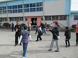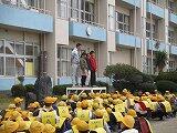 ▼全校で「さようなら」のあいさつをして、歩き出しました。