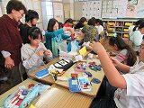 5年生は、お手玉作りとベーゴマで遊ぼうのコーナーです。作り方や遊び方を教えていただき、楽しみました。