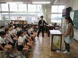 校内読書週間の行事で、先日、担任の先生方による読み聞かせをしていただきましたが、今日は、スペシャルゲストによる朝の読み聞かせをおこないました。