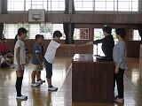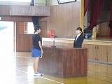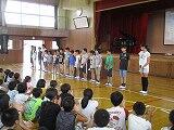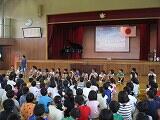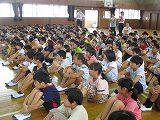 朝の会で健康観察をしてから、1時間目に体育館に全校児童が集まりました。
