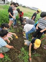7月30日、6年生が理科の学習用に農園で育てていたジャガイモを収穫しました。
