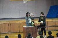 次に持久走大会で3位までに入賞した児童と、見事新記録賞に輝いた児童に賞状やトロフィが贈られました。