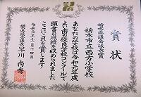 続いて、西方小としていただいた表彰の紹介をしていただきました。全国学校歯科保健優良校として奨励賞をいただきました。またよい歯の優良学校コンクールで栃木県議会議長賞と栃木県歯科医師会長賞をダブルで受賞しました。これからもよい歯でいてくださいね。