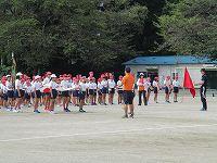 入場の隊形に整列し、「入場行進」「開会式」「ラジオ体操・応援合戦並び方」の確認をしました。