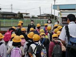 少し肌寒い朝でしたが、1・2年生が元気にあいさつをして、校外学習に出発しました