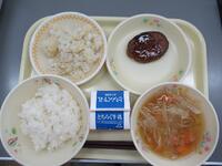 はちみつパン ぎゅうにゅう おこめとポテトのささみカツ こんにゃくサラダ ミネストローネ アセロラゼリー
