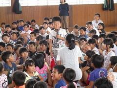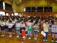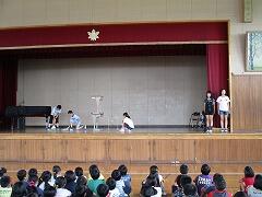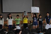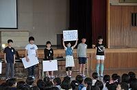 児童集会で、美化委員会と放送委員会の発表がありました。