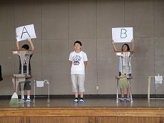 続いて放送委員会からは、放送の正しい聴き方の劇、お昼のクイズの曜日ごとの紹介、放送委員会の活動・クイズラリーに関するクイズなどが行われました。