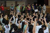 朝から昼休みまでという限られた時間でしたが、まず、6年生の授業を参観し、5・6年生には「バレーボール」の授業を、さらに3年生の「跳び箱運動」の授業支援までしていただきました。