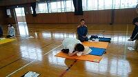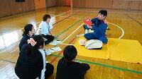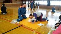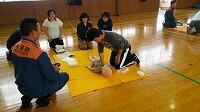 参加者全員が心臓マッサージと人工呼吸さらにAEDによる電気ショックのかけ方を模型人形を使い実際に手を動かして練習をしました。
