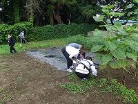 遊具・プールの塗装、藤の木の剪定、校舎内トイレ清掃、水道マット洗いを行いました。プールの塗装には、おやじの会の方にもご協力いただきました。