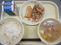 ごはん 牛乳 セルフ五目ごはんの具 いかの生姜焼き 豚汁