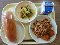 献立は、アップルパン、牛乳、いもフライ焼きそば、和風サラダです。