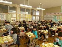 校長先生からは、2つのお話がありました。1つ目は、今年の節分が122年ぶりに2月2日になったことから、どうしてなのか考えることが大切であるというお話でした。2つ目は、先週行われた避難訓練の様子から、自分の命を守るために、自分で判断することが大切であるというお話でした。児童たちは、各教室で真剣な態度で話を聞いていました。