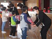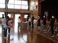 更生保護女性会の2人がお見えになり、1年生に雑巾を寄付してくださいました。