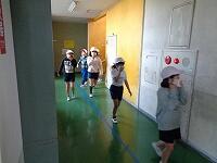 まず姿勢を低くし、頭部を守り、動かないシェイクアウト訓練について、今週の月曜日に指導しておき、本日実施しました。