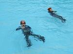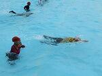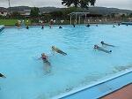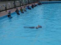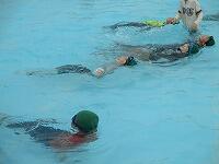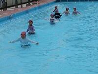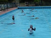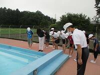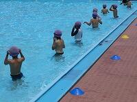 3密にならないよう、注意点を確認しながら、プールの学習が始まりました。準備運動は、校庭で広がって行い、プールサイドも間隔をとって整列します。「水中歩き」や「けのび」などの練習もクラスを3つのグループに分けて、混雑しないようにして楽しみながら学習しています。