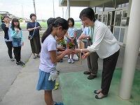 運動委員会の児童が代表として参加し、佐藤校長先生に合わせてお清めをしました。