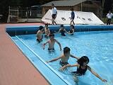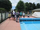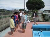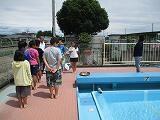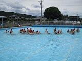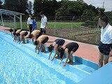 3密にならないよう、注意点を確認しながら、プールの学習が始まりました。準備運動は、校庭で広がって行い、プールサイドも間隔をとって整列します。「水中歩き」や「けのび」などの練習もクラスを3つのグループに分けて、混雑しないようにして楽しみながら学習しています。