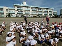 穏やかな秋晴れの下、1~4年生がバスに乗って、校外学習へ出かけました