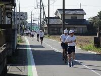 秋晴れの下、持久走大会のコース確認のために、全学年が試走を行いました