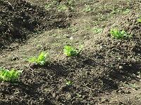 学校農園には、タンポポやモンシロチョウの姿があり、2年生が育てている大根も、間引きの時期を迎えました(3枚目にモンシロチョウがいます。分かりますか?)