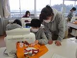 初めてミシンを使う子が多く、最初は心配でしたが、「まっすぐな直線縫い」や「返し縫い」はもちろん、「一目落とす」縫い方にも慣れ、もうすぐ、すてきなエプロンができ上がりそうです。