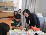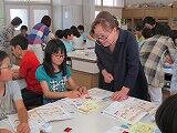 ▼中学生も、机間を回って、アドバイスをしてくれました。