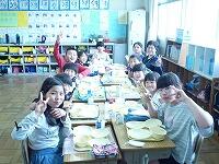 西方小の給食は、いつもおいしいのですが、今日はいろいろな学年の友達といっしょで、楽しく会話をしながら食べられたので、また一段と笑顔が輝いて見え、おいしく感じられました。