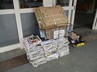 新聞紙、ダンボール等は、たたんで、ひもでしばって、昇降口の金網の中に入れてください。金網に入りきれないときは、周りに並べて置いてください。アルミ缶の置き場は、体育館の北側です。これからも、どうぞよろしくお願いいたします。