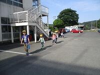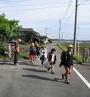 朝から元気に歩いて西方小水田へ!!お見送りの6年生、ありがとう!!