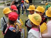 今日は、曇りですが気温が高いので、歩き始めると、汗びっしょり…途中休憩して、水分補給をしながら、やっと到着しました。行き帰りの安全な歩き方も、生活科の学習です。