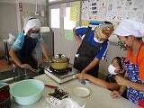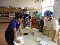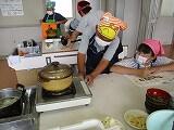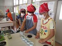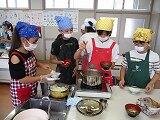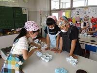 今日は「お茶を入れる」実習をしました。今は、IHの家庭も増えてきたので、初めてガスコンロを使う子もいました。ガスせんを開け閉めしたり、器具せんを回して点火・ほのおの調節・消火をしたりする経験は、とても大切です。慣れている子に教えてもらいながらやってみて、できた喜びを味わうことができました。